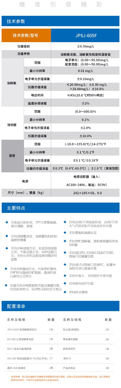 【JPSJ-605F标配套装】 JPSJ-605F主机、DO-958-S型溶解氧电极、REX-3电极支架